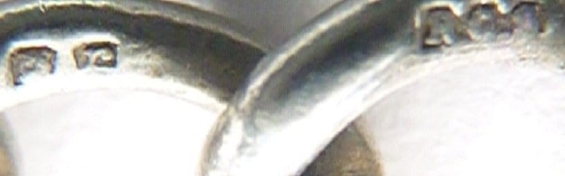 The curbs are hallmarked with the lion passant (sterling silver) stamp.