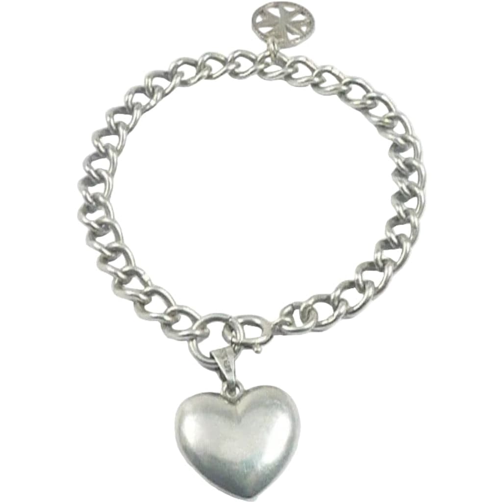 Vintage Sterling Silver Curb Bracelet With Heart And Maltese Cross Lucky Charms 1972