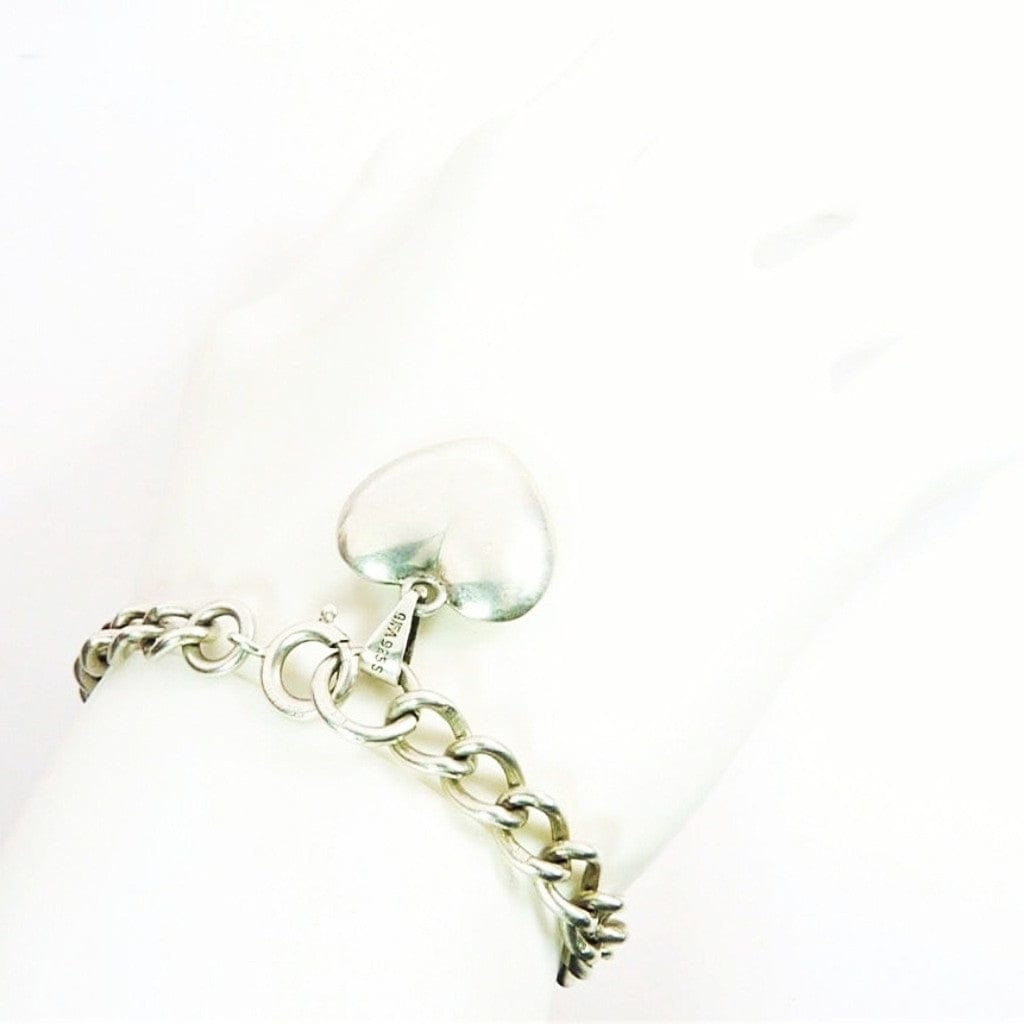 The 2 cm three dimensional lucky heart charm is signed by the maker and stamped 925 (sterling silver).