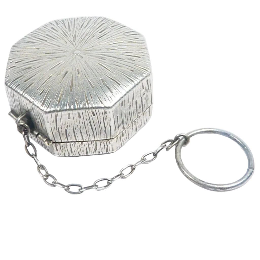 and equipped with mirror and finger-ring chain.
