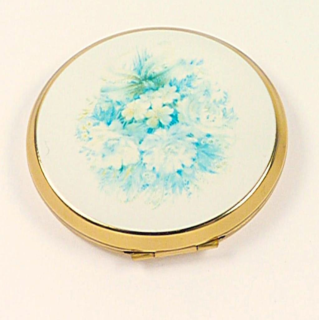 Such a pretty subtle pale pink and blue floral Stratton brand compact mirror!