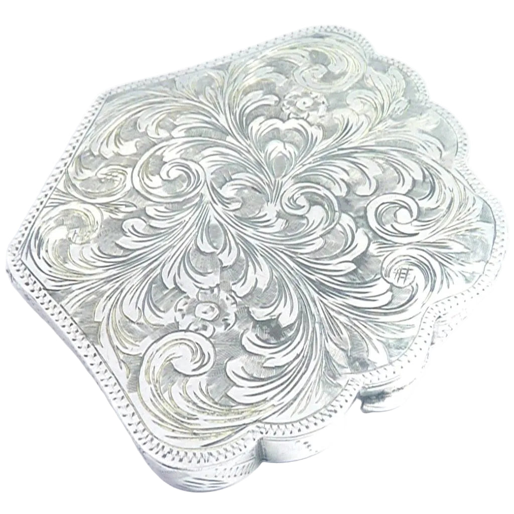 Stunning Italian Solid Silver Compact Mirror For Handbag Or Purse 1950s