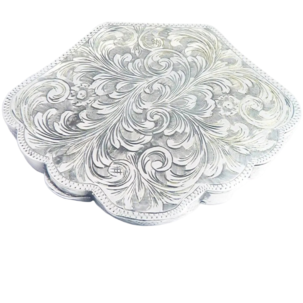 A superb gleaming solid silver compact mirror which was crafted in the middle of the twentieth century.