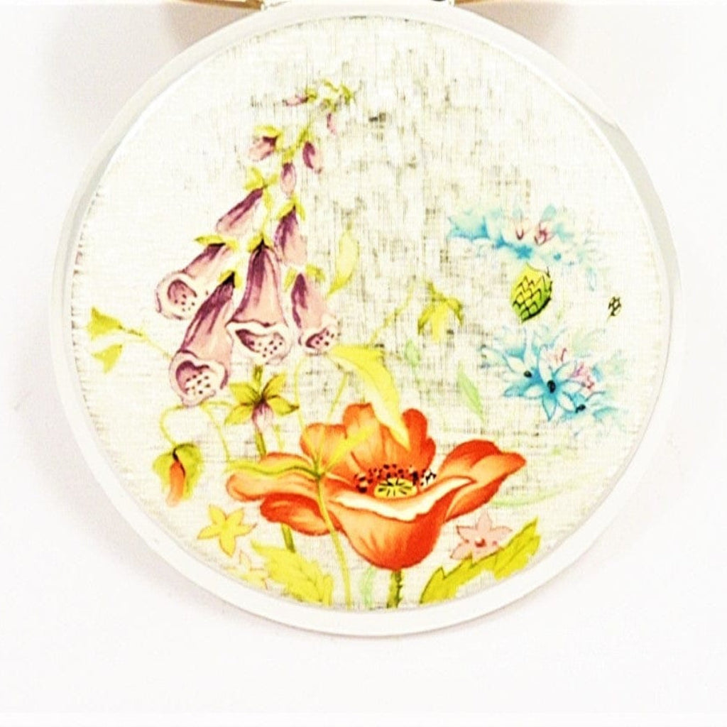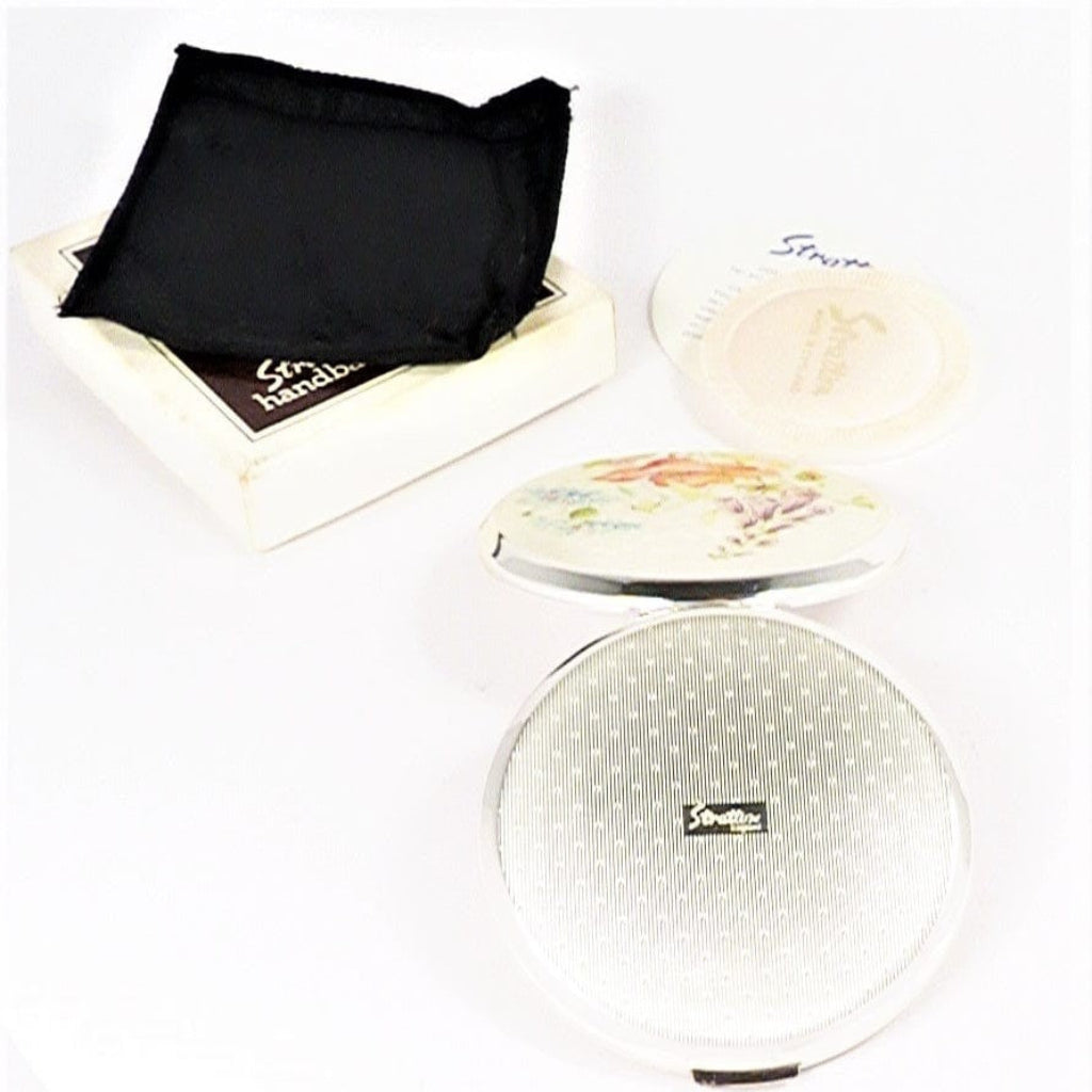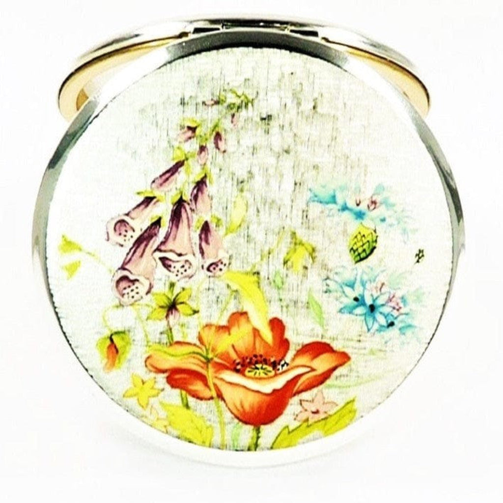 Floral Makeup Compact Mirror With Original Accessories 1980s