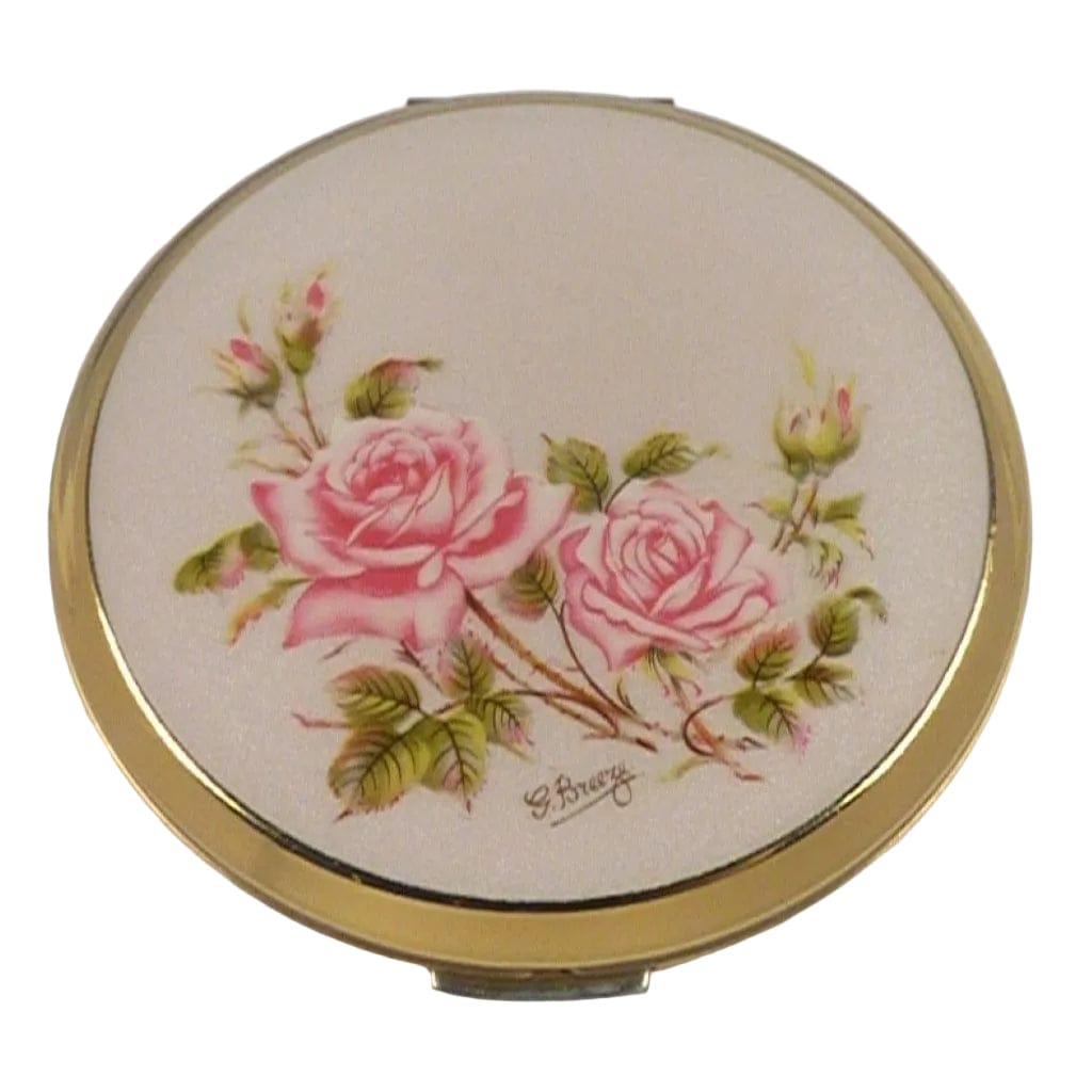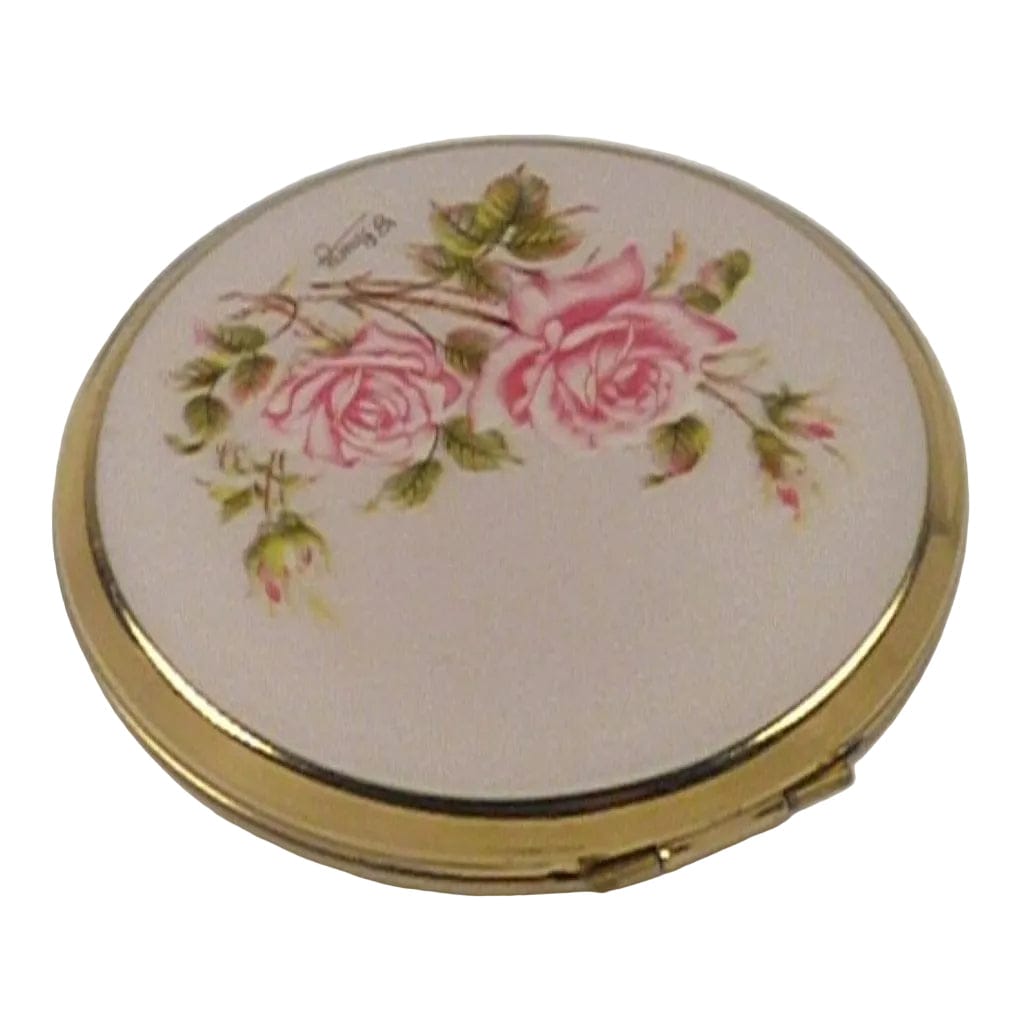 Pink Rose Floral Stratton handbag Makeup Compact Mirror