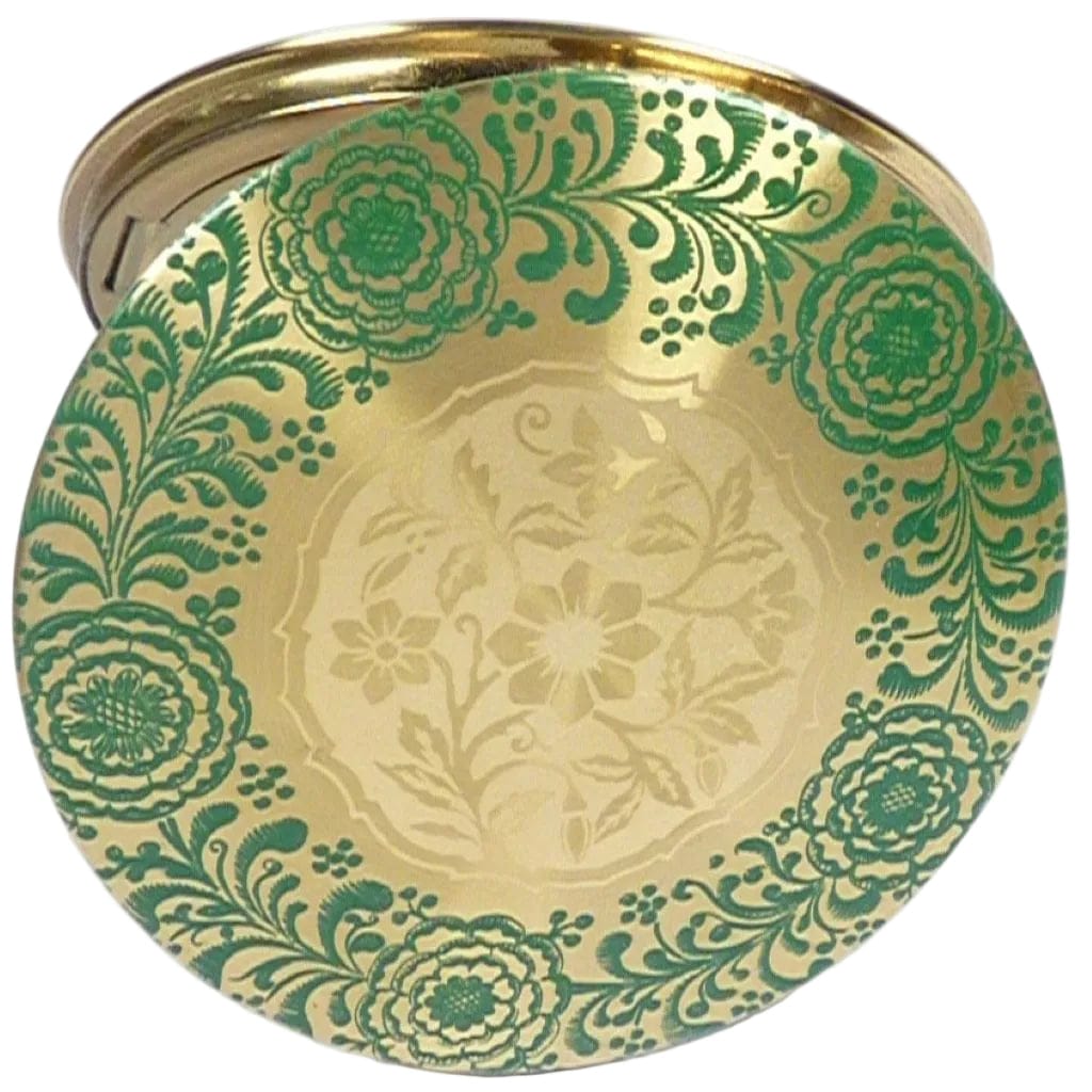 Second Hand Green And Gold Floral Vintage Compact Mirror 1950s