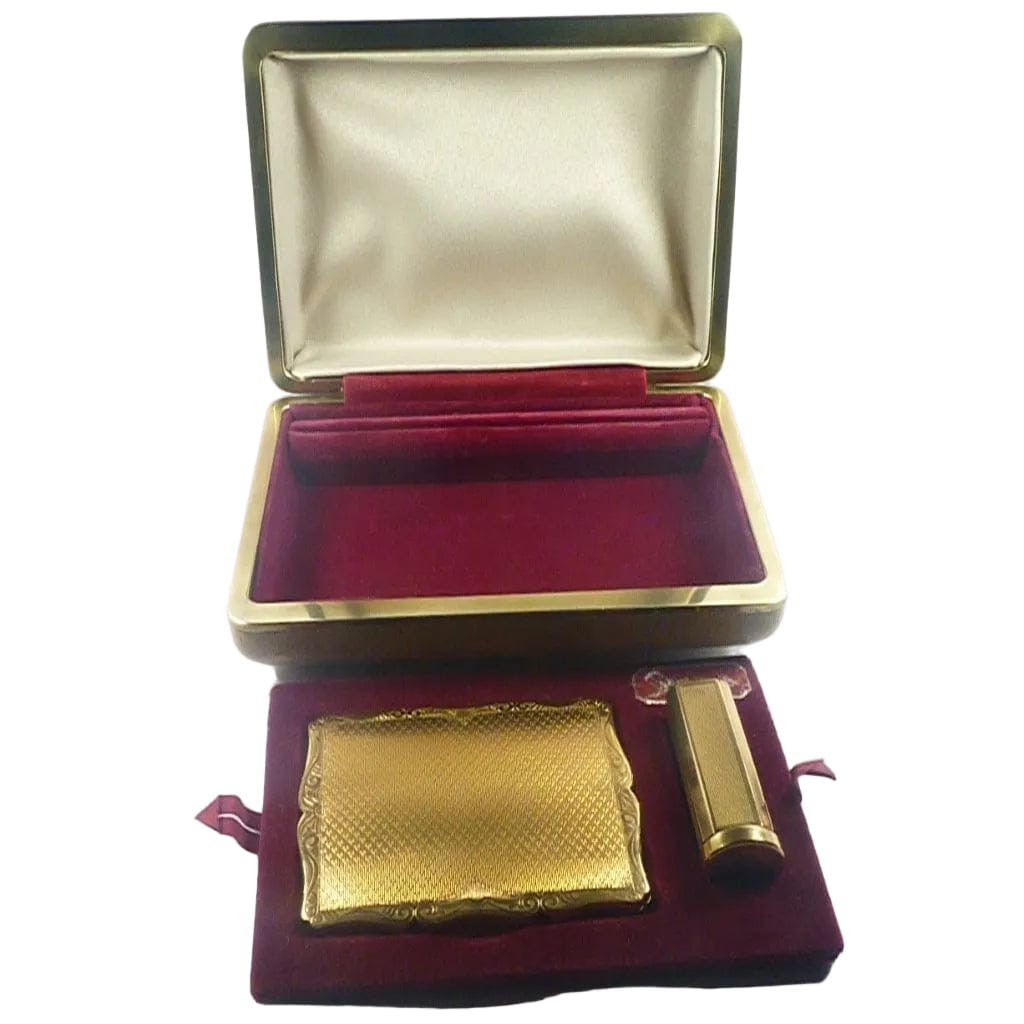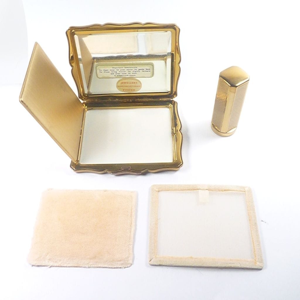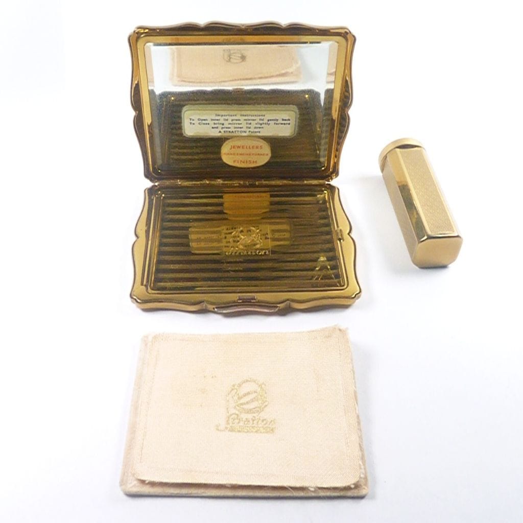 Unused Cased Vintage Stratton Powder Compact Lipstick Vanity Set