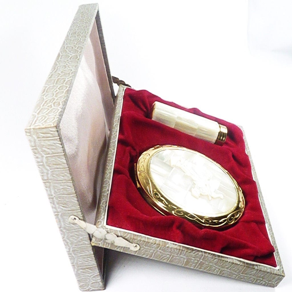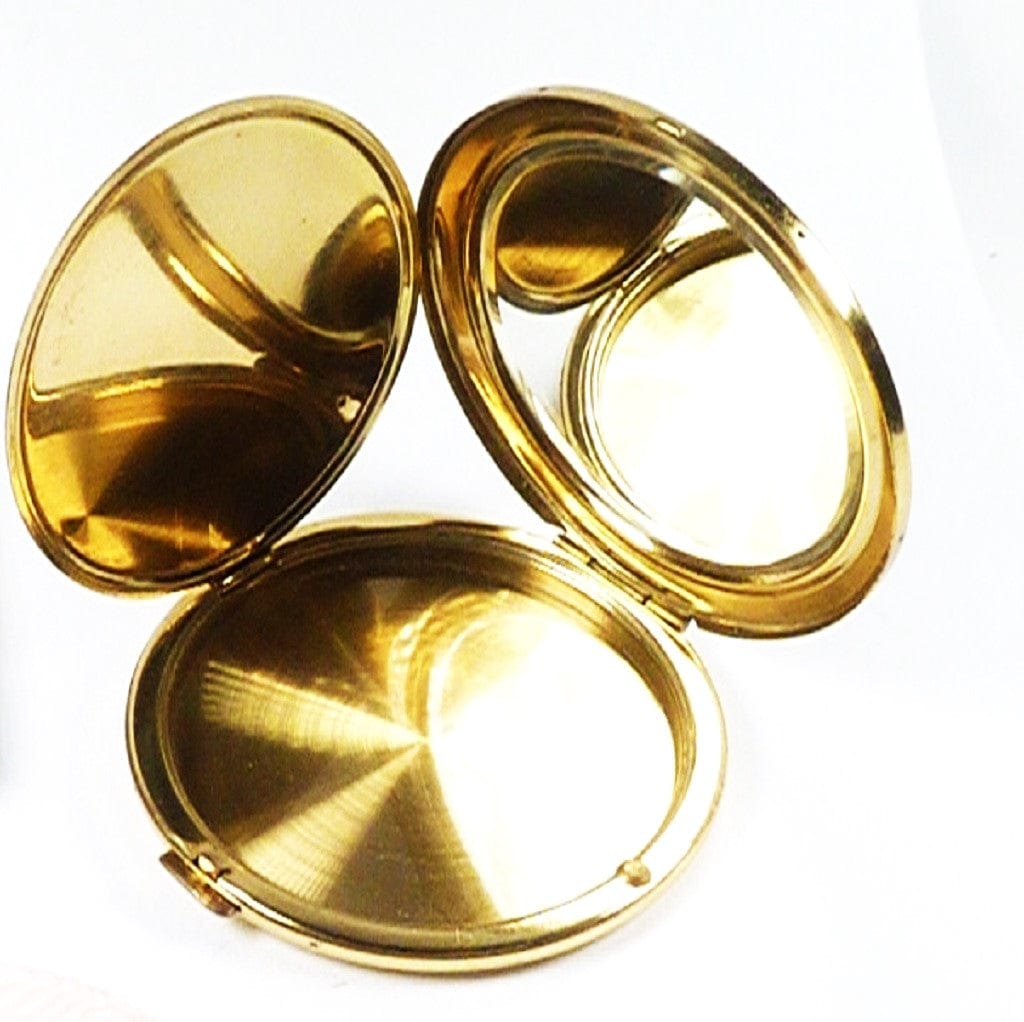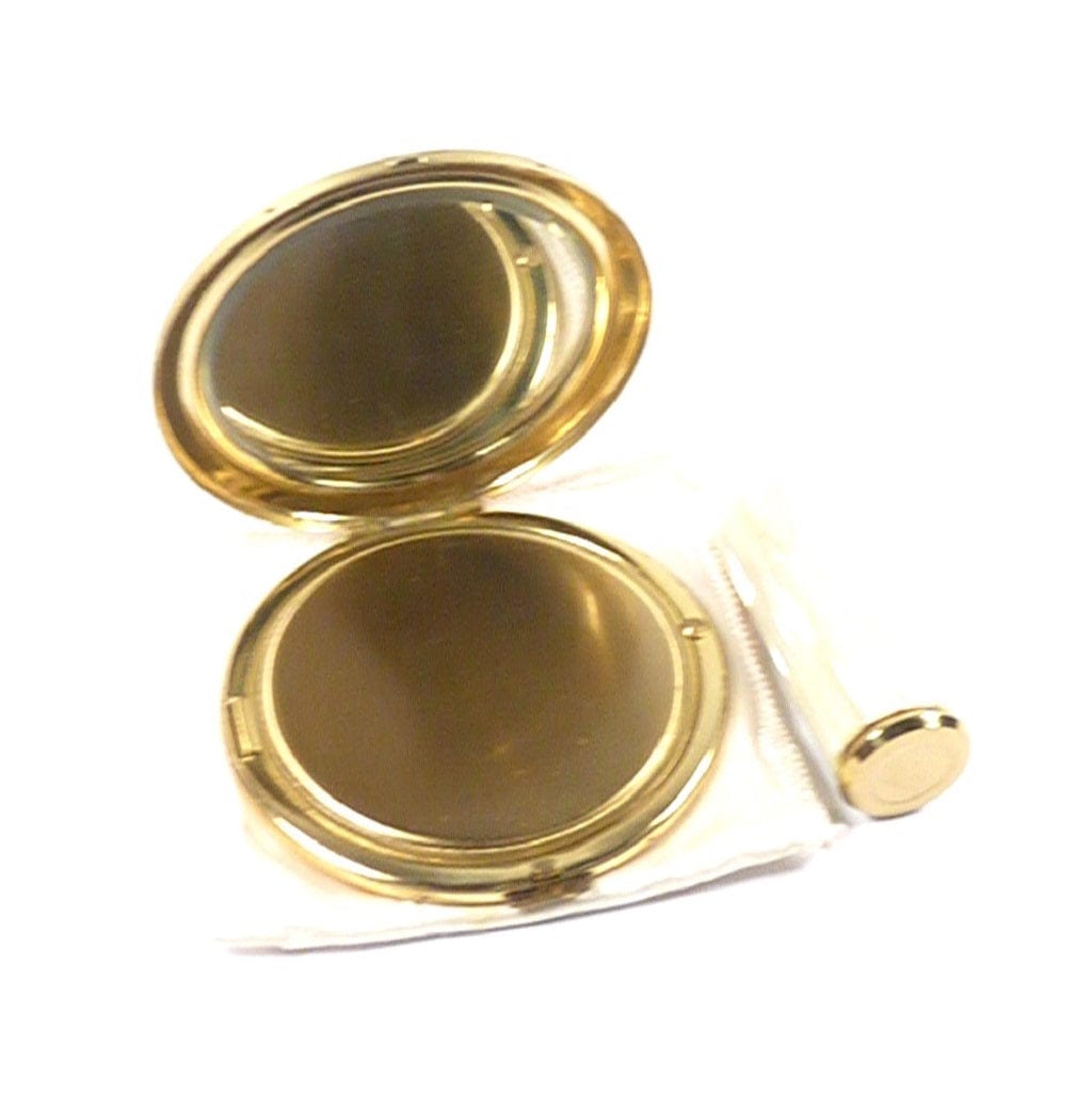 The compact is suitable for use with modern loose face powder or as a handbag mirror.