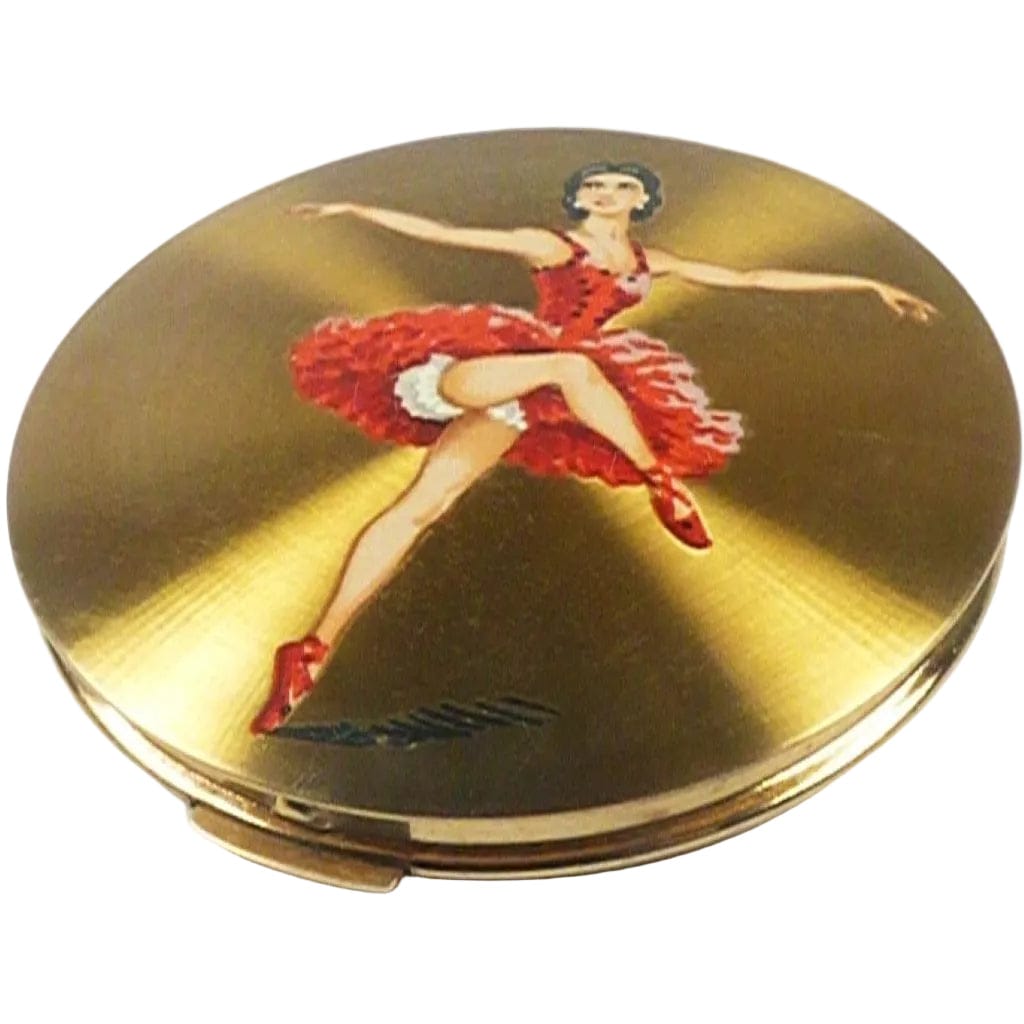 A very nice 1950s Stratton powder compact is adorned with a ballet scene.